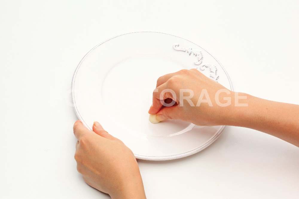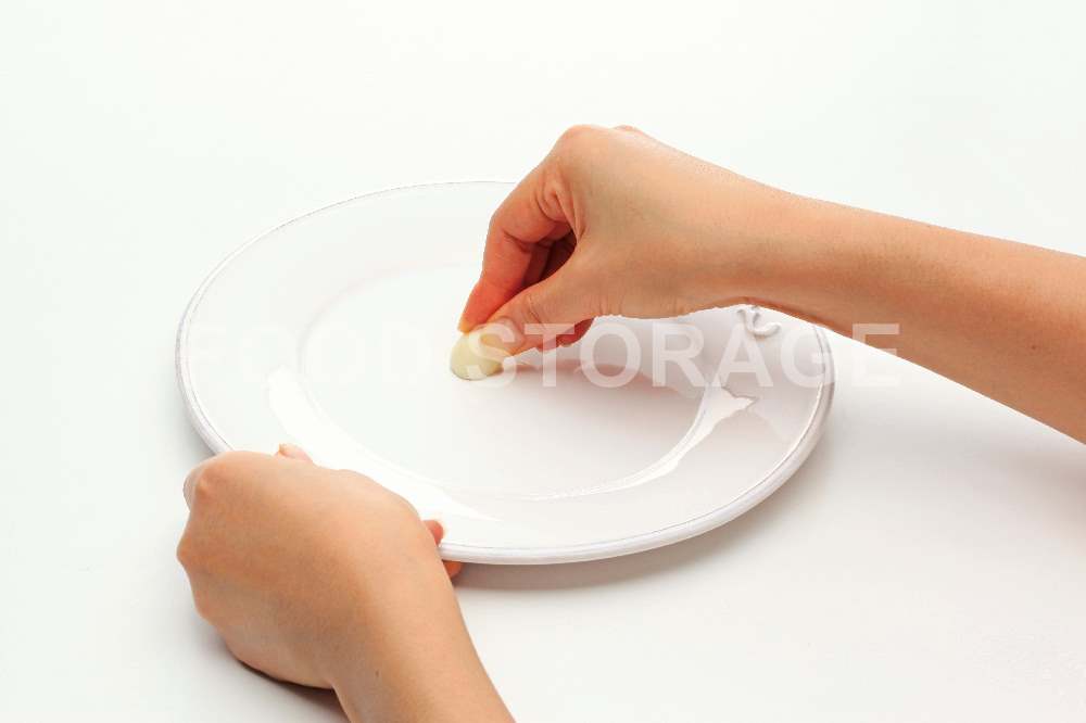 にんにくは皮をむき、根元を切り落として切り口を器全体にこすりつける。