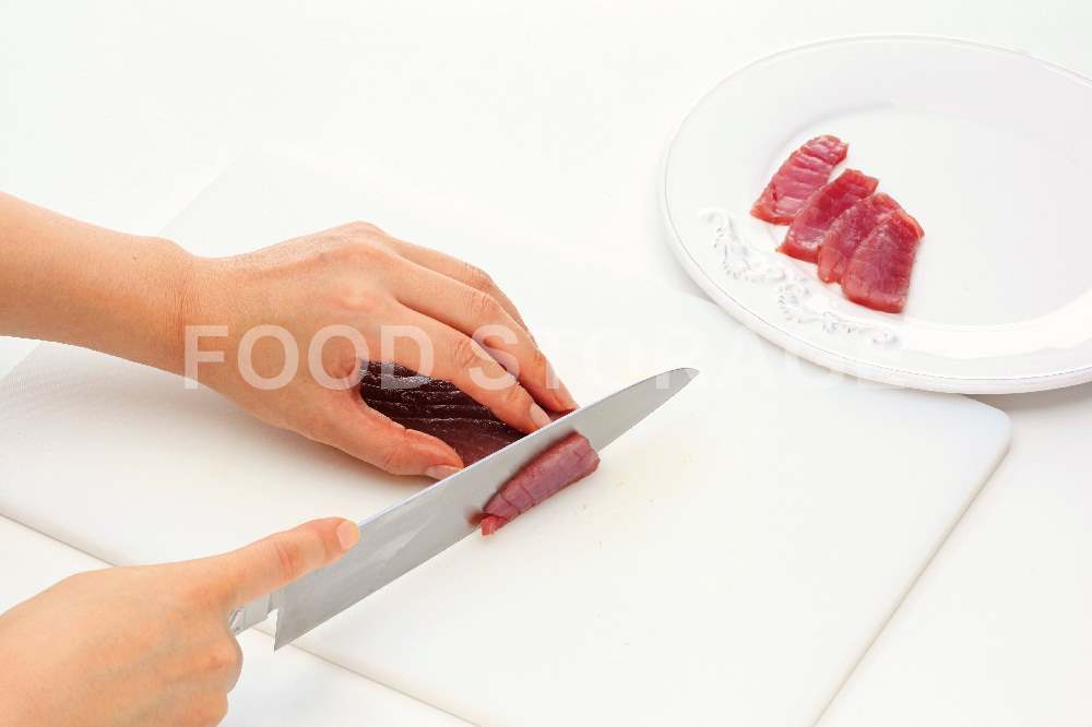 まぐろは3㎜厚さの薄切りにし、1の器に並べて盛り付ける |