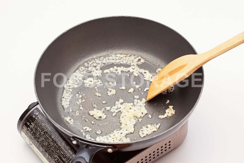 フライパンにサラダ油とにんにく、しょうがを入れて中火にかけて香りが出るまで炒める。 |
