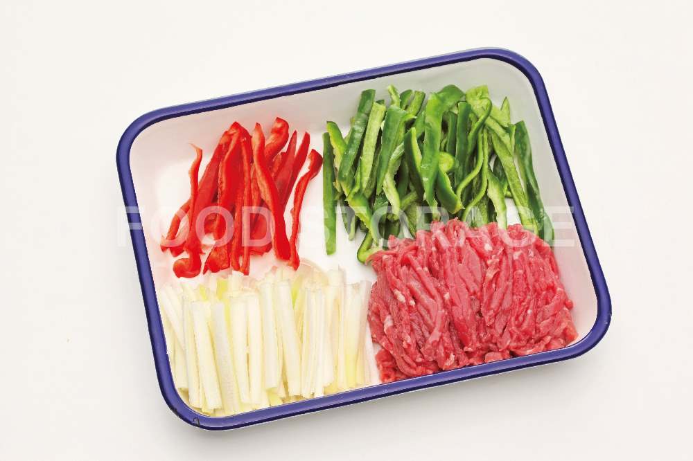 ピーマン肉を同じ細切りにすると、彩りやバランスも良くなり盛り付けやすい。見た目、味ともに切り方は大切。 |