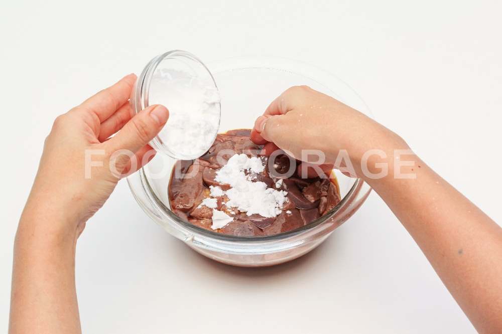 1のレバーに塩を絡め、片栗粉を混ぜ合わせて15分ほど置く。 |