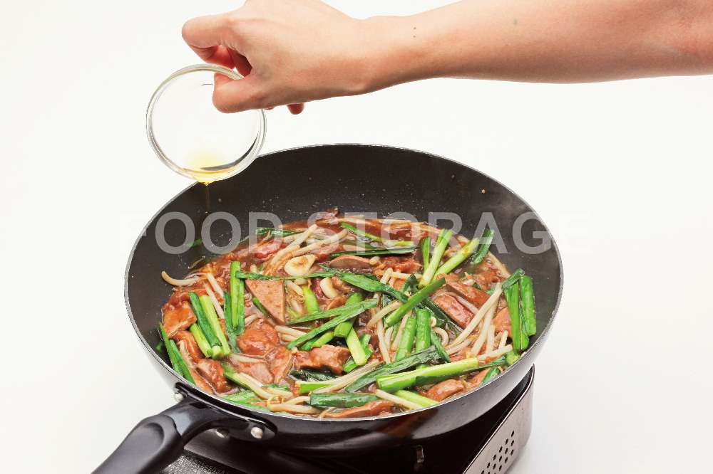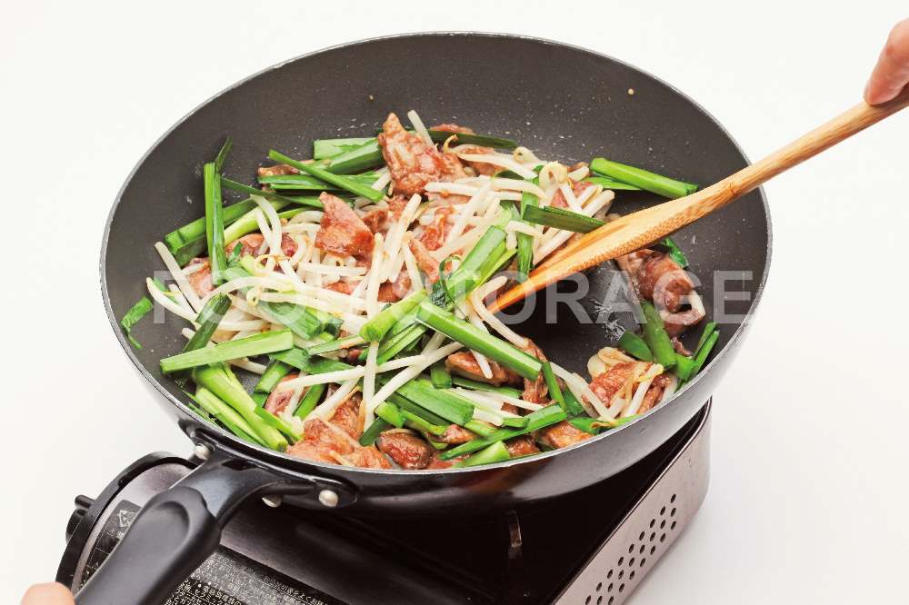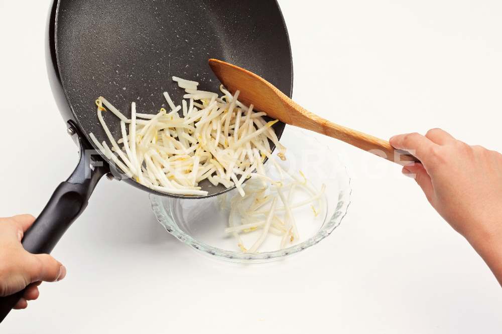 POINT:もやしはシャキシャキ感を残すため、一度取り出してから戻し入れる。 |