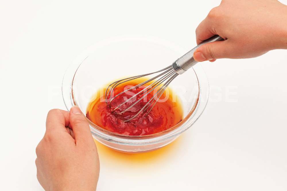 2に片栗粉、小麦粉を加えて、粉ぽさがなくなるまでも見込む