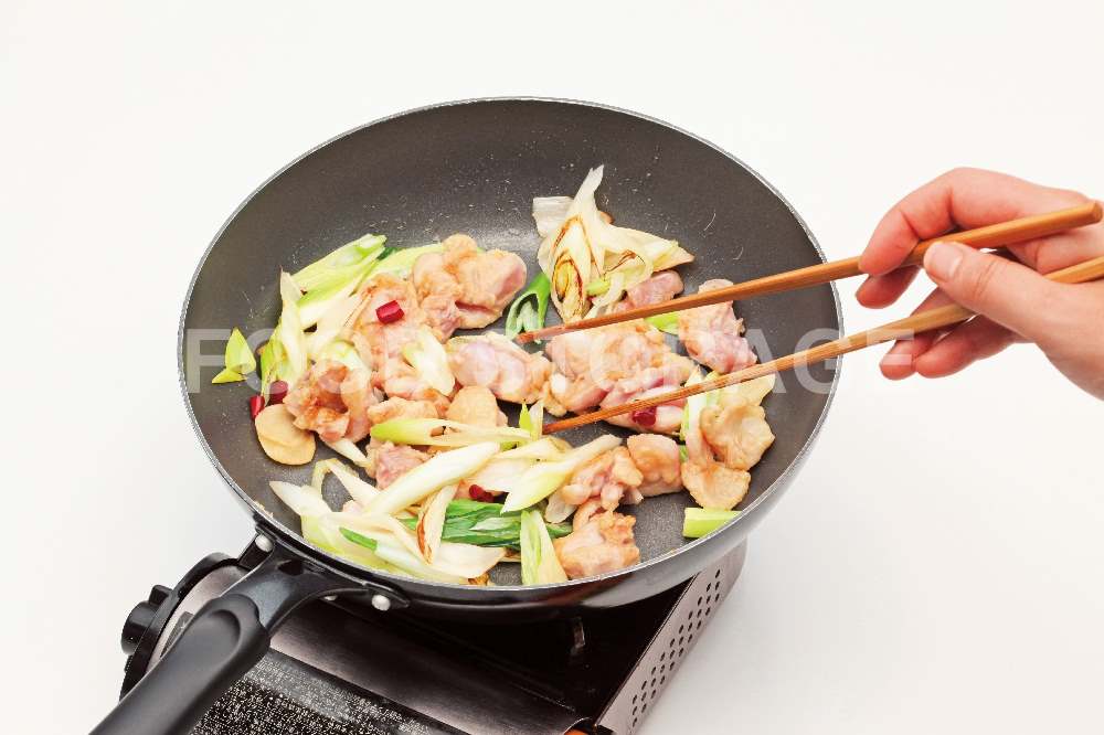 フライパンにサラダ油を弱火で熱し、3を入れて香りが出たら中火にし2の鶏肉を加えて炒める。 |