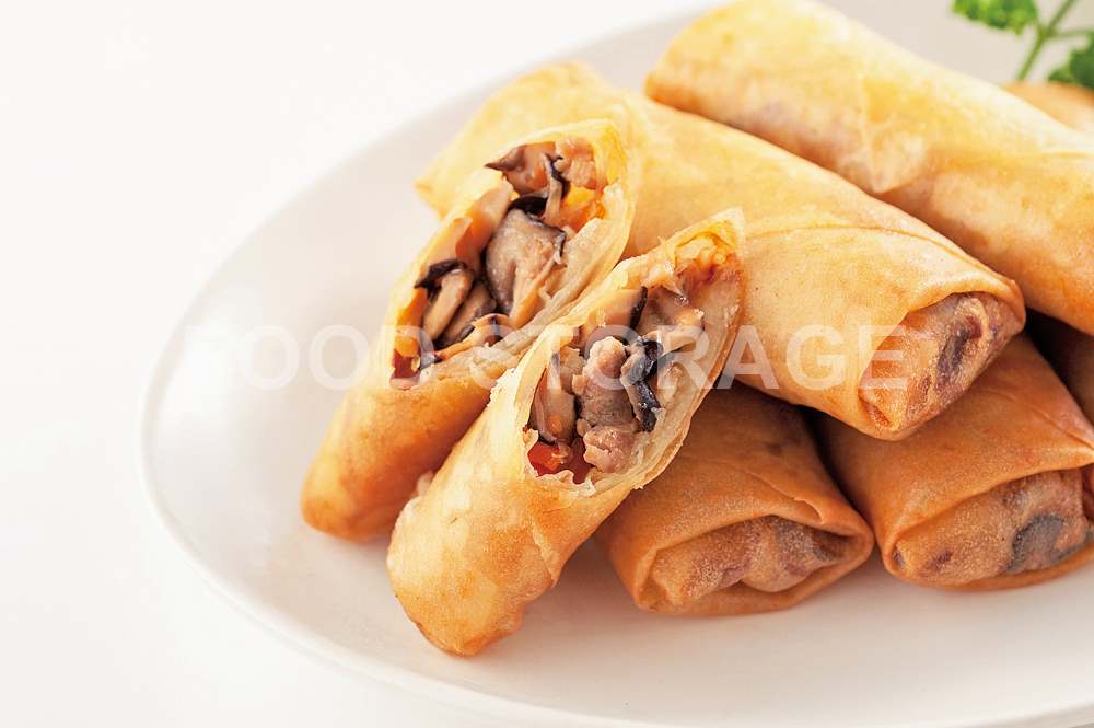 春巻きの皮をひし形になるように広げ、6の具を6等分して真ん中より少し手前にのせ、手前から巻く。 |