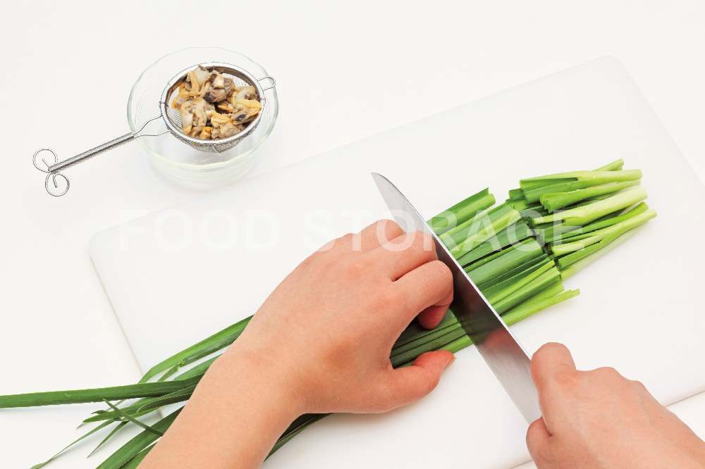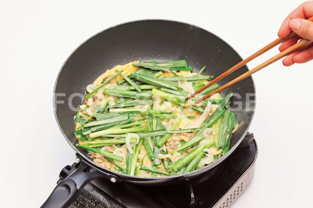 あさりの水煮は缶汁を切る。にらは7㎝長さに切る。