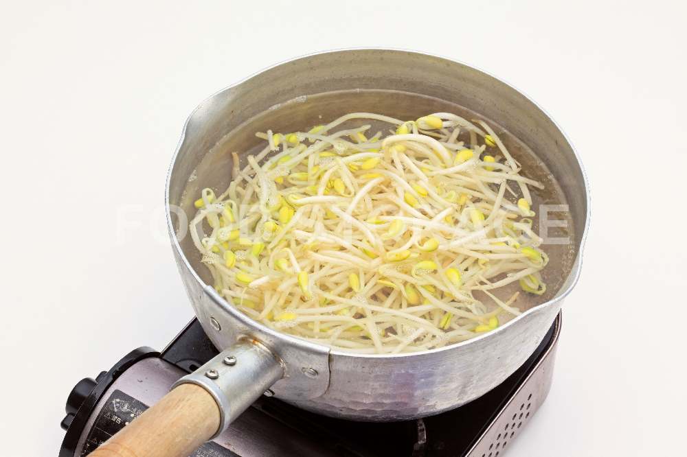 ポイント:大豆もやしは食感を良くするためにひげ根を取る。 |