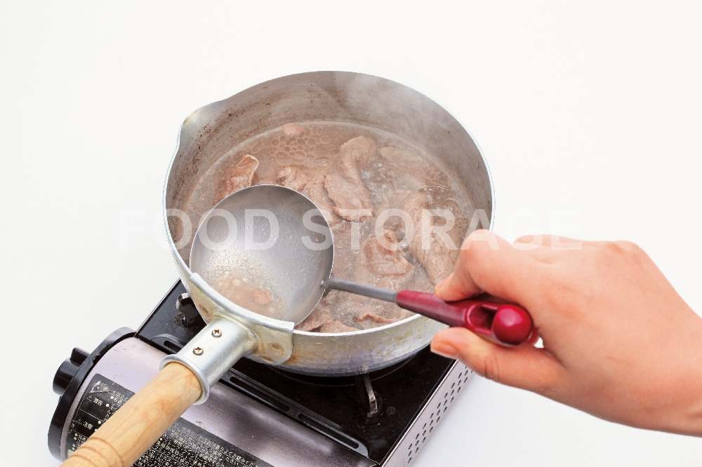 POINT:何度も茹でることで牛すじ肉の臭みが減り、柔らかくなる。 |