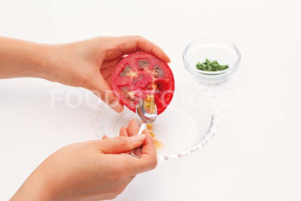ポイント:煮物や汁物にトマトを使うときは種を取ると舌触りが良くなる。 |