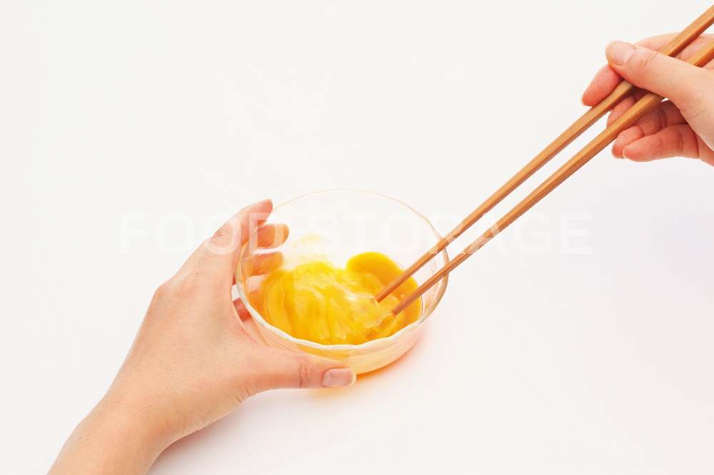 卵は1個ずつ溶いておく。 |