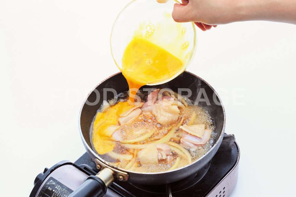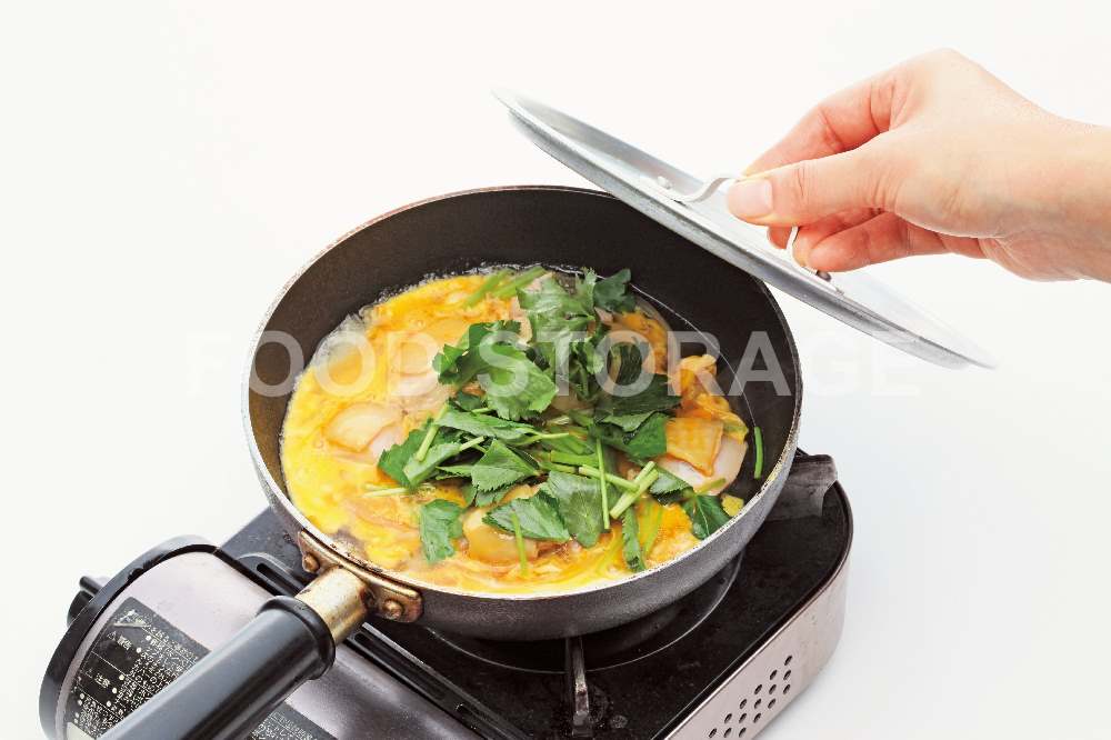 ポイント:ふたをして蒸らすことで卵が半熟状態になる。 |
