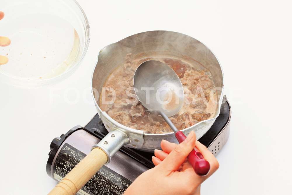 ポイント:牛肉から出てくるアクをきちんと取り除く。 |
