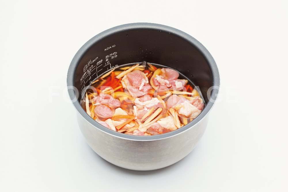3~6の具をのせ、炊飯器で普通に炊く。 |