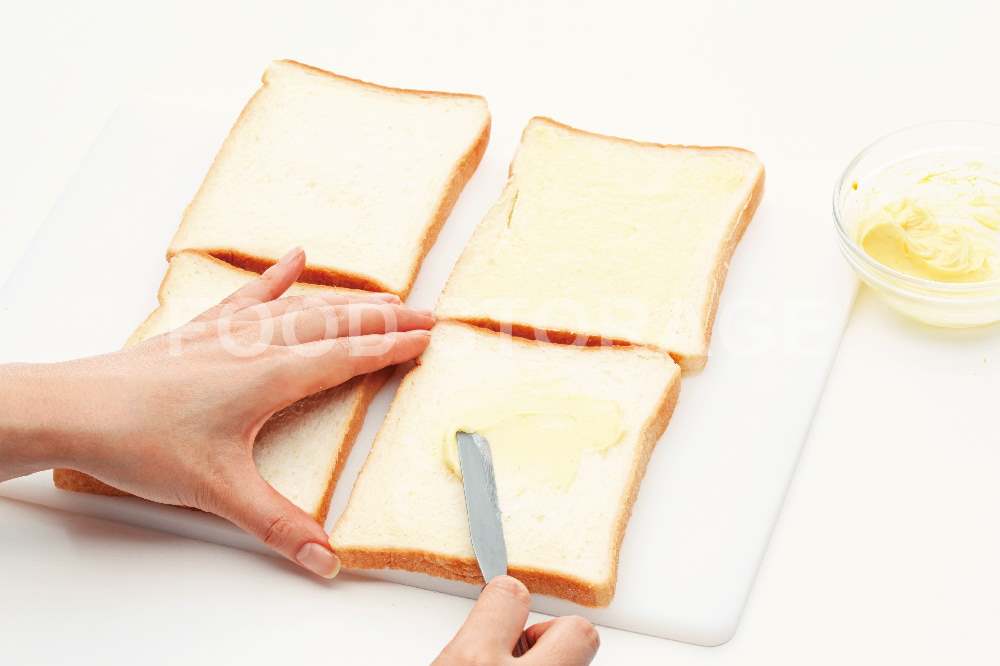 食パンは2枚1組にして内側に混ぜ合わせたAを塗る。 |