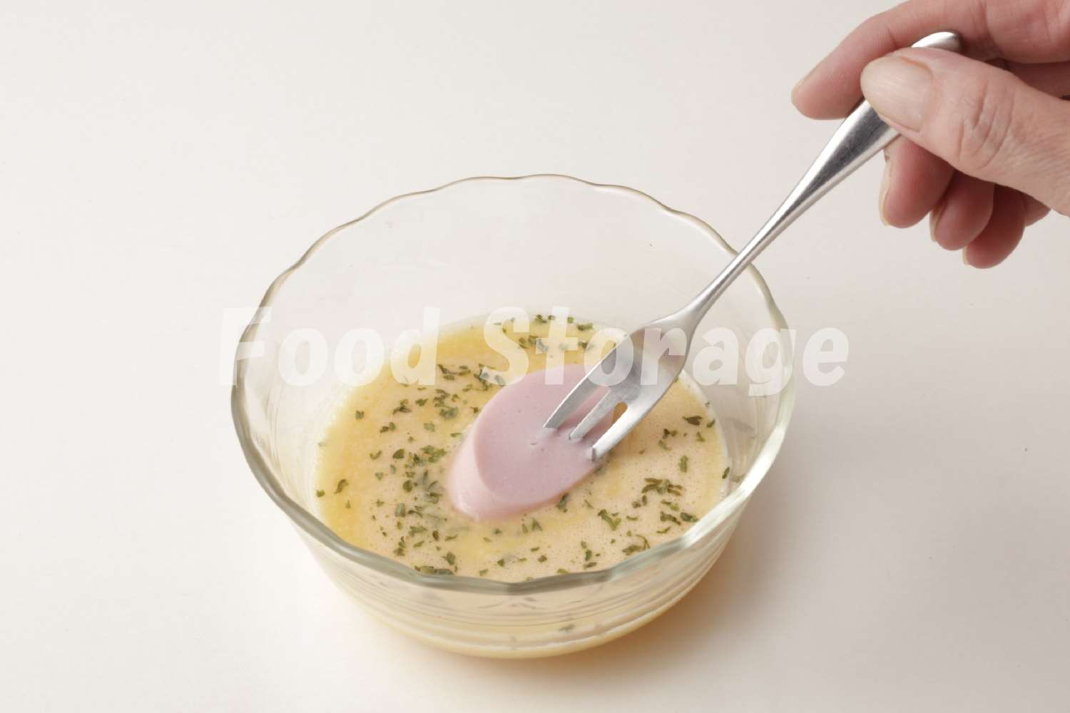 2 ボウルに卵、小麦粉、ドライパセリを混ぜ合わせ、①をくぐらせて絡める。