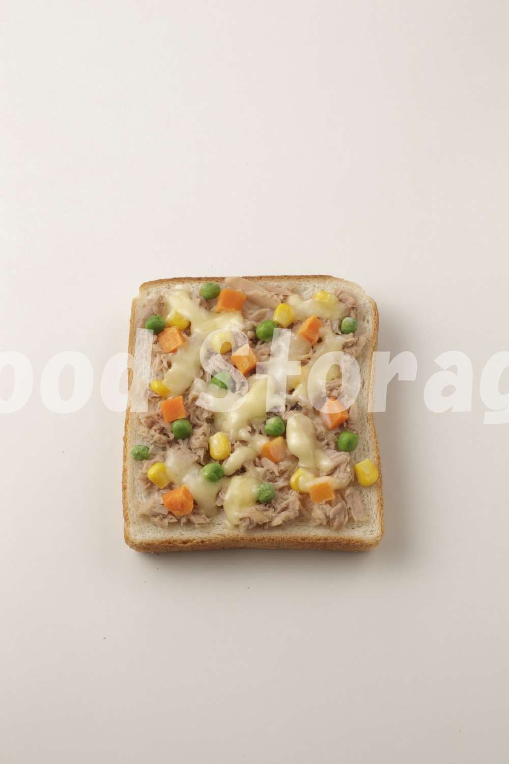 パンに①、凍ったままのミックスベジタブルをのせ、チーズを散らす。オーブントースターでこんがりするまで焼く。