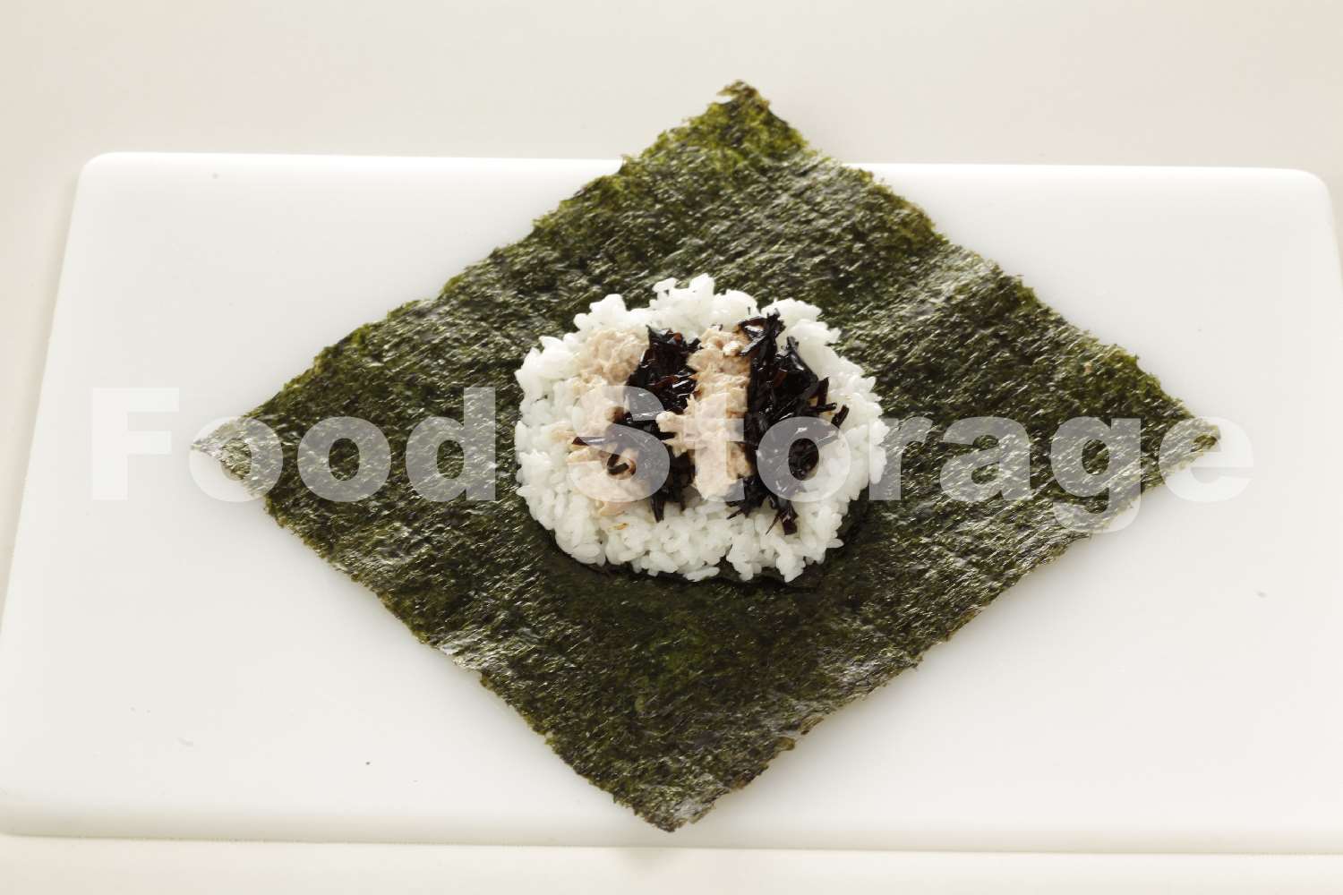 ツナと昆布は交互にのせると切ったときにきれい。 |