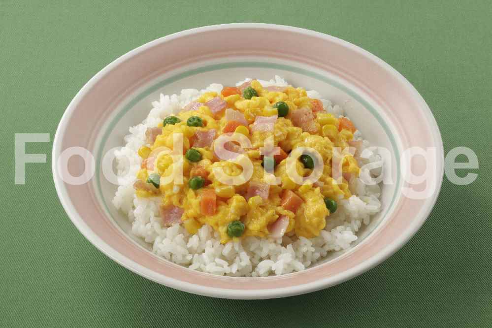 【朝ごはん】スクランブルエッグ丼(+トマト、ポタージュスープ)