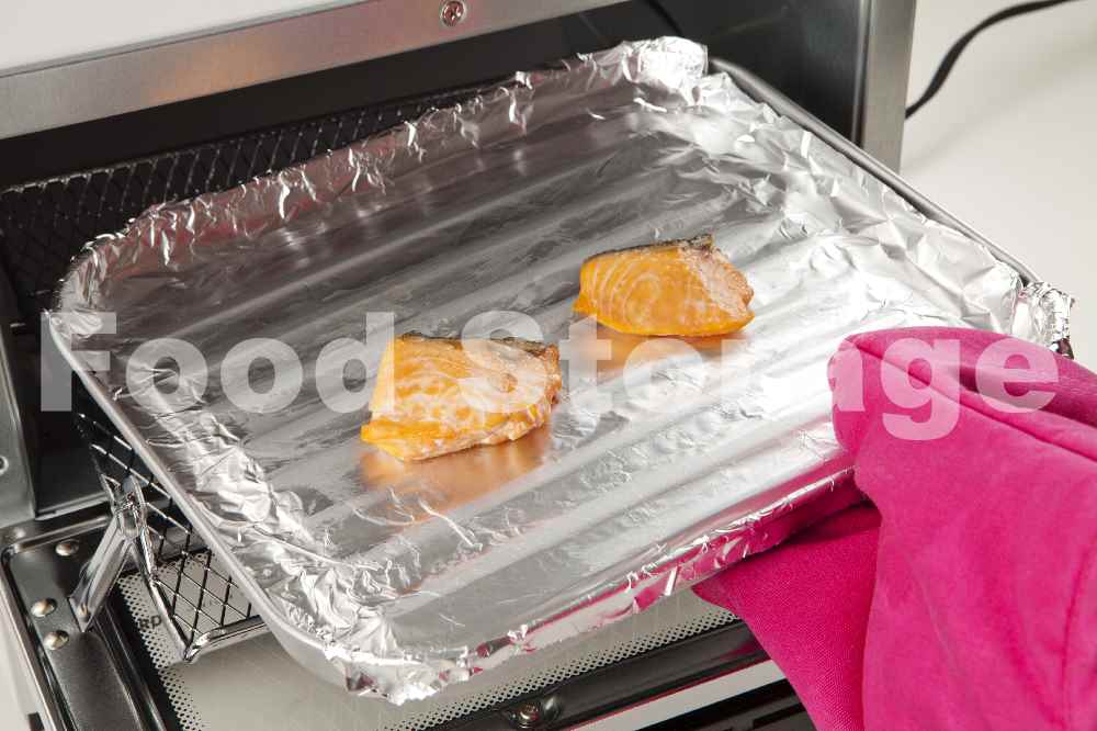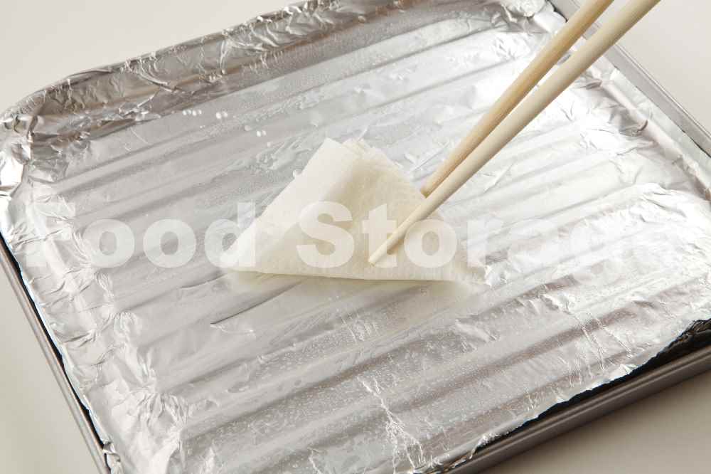 オーブントースターの天板にアルミを敷き、油を塗る。