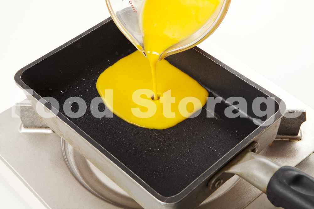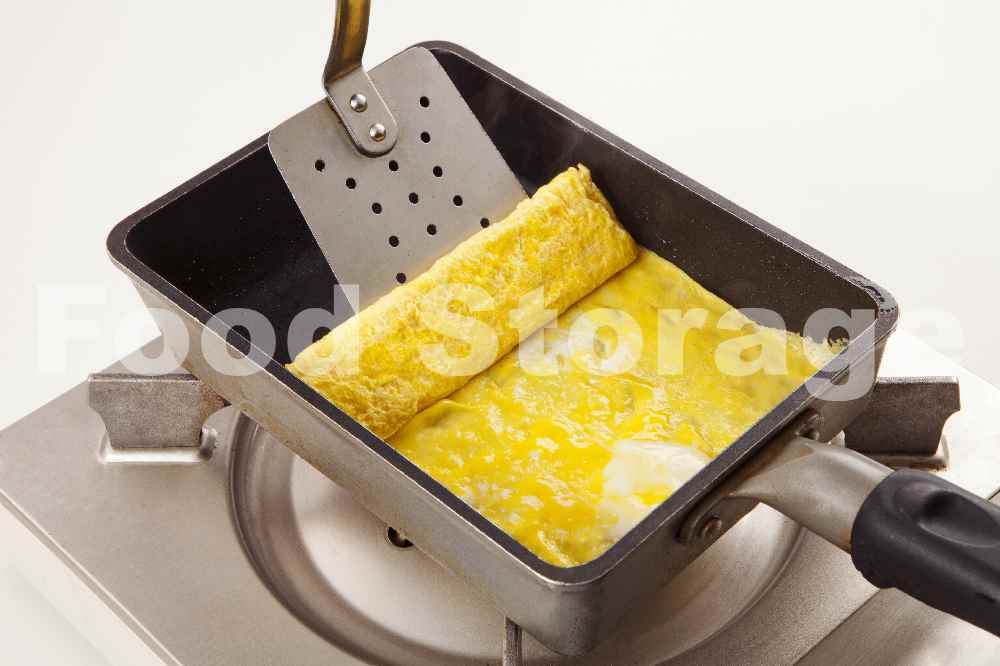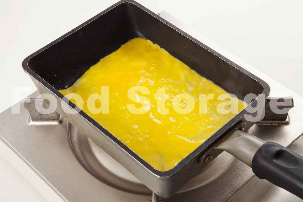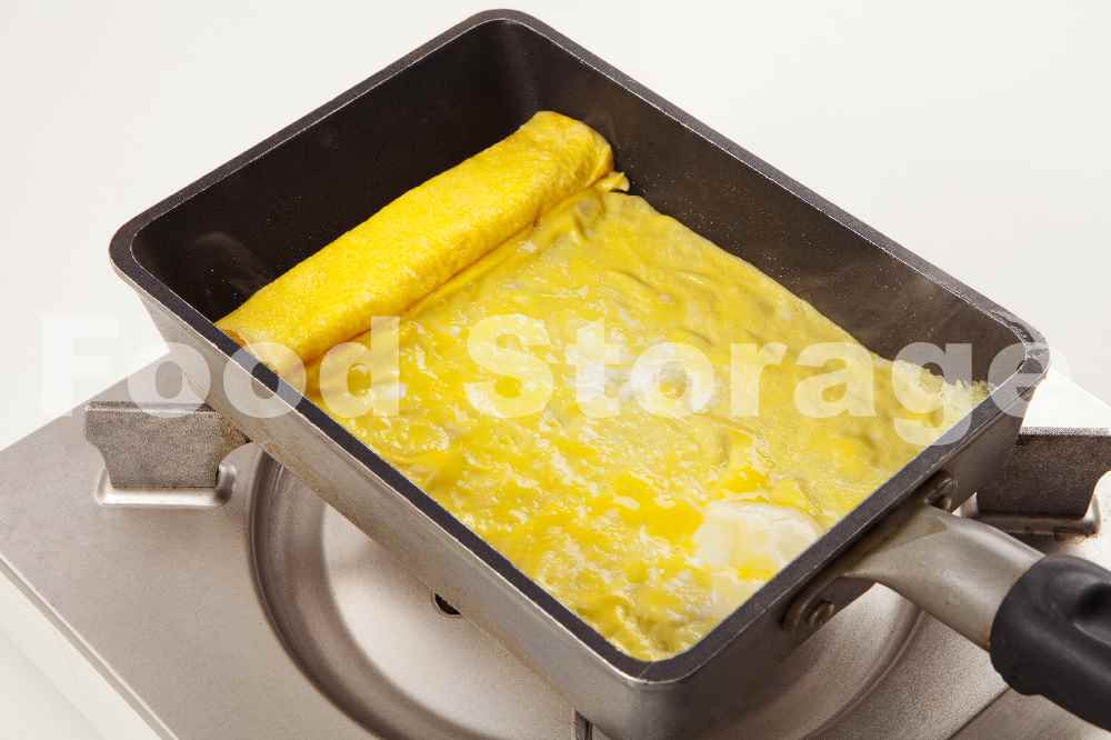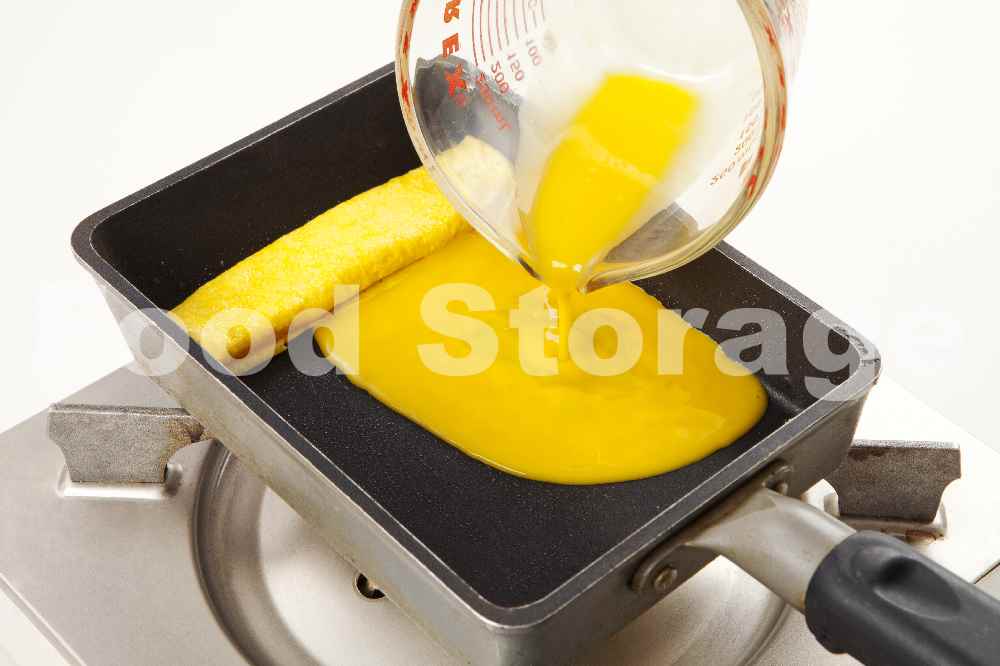 熱した卵焼き器に油を入れ、中火にして①の1/2量を流し入れる。 |