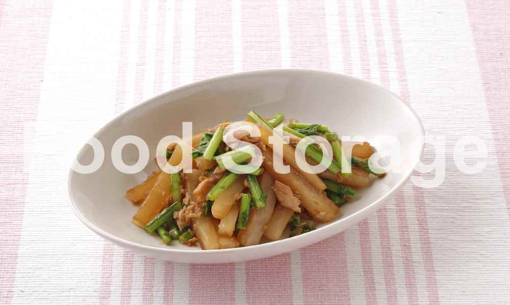 鍋にツナと①を入れ、中火にかけて約1分炒める。醤油を加えて混ぜ、ふたをして中火で約3分煮て、②を加える。再度ふたをして時々混ぜながら火が通るまで煮る。