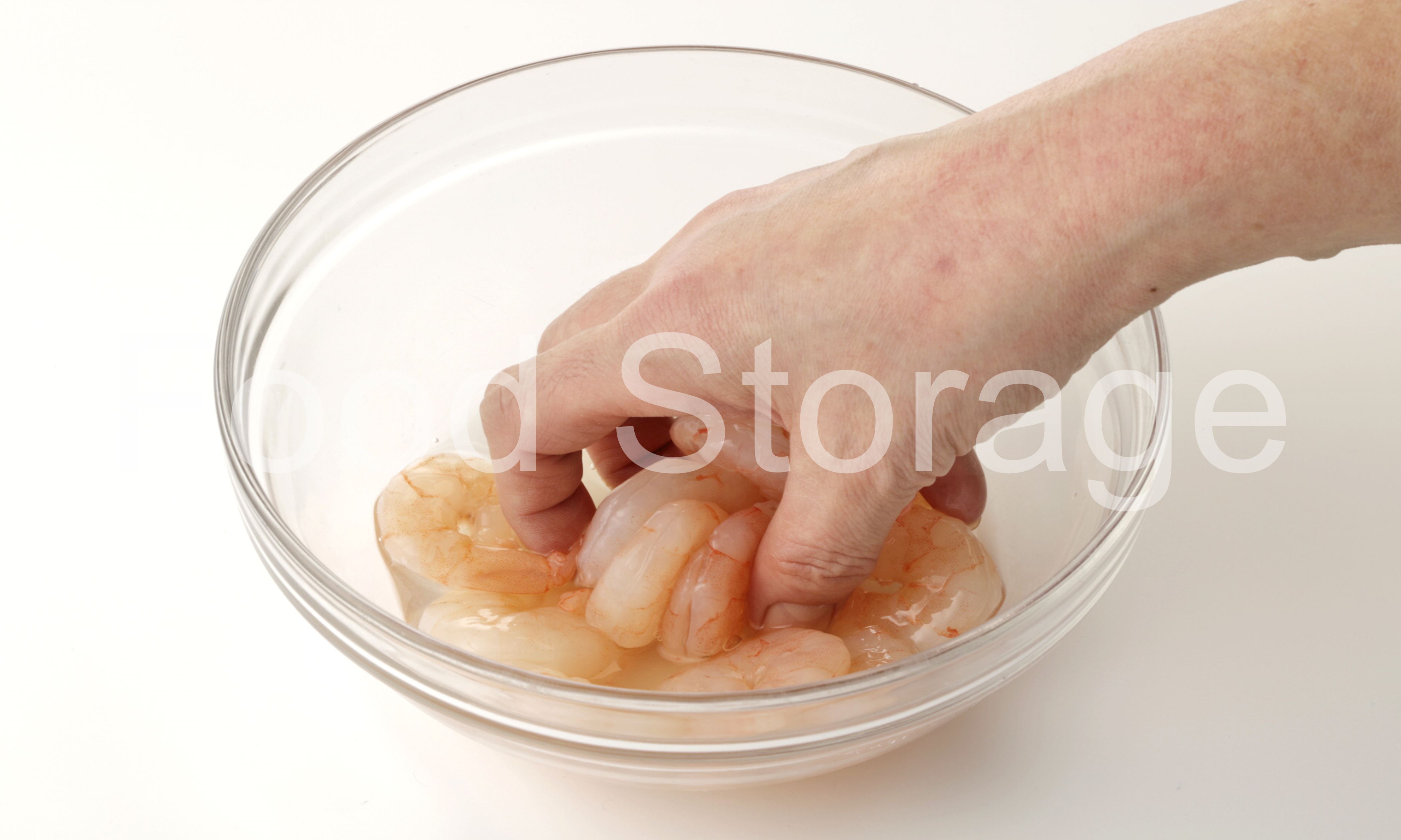 酒でもみ洗いすることでえびのにおいを取り、風味をつける。 |