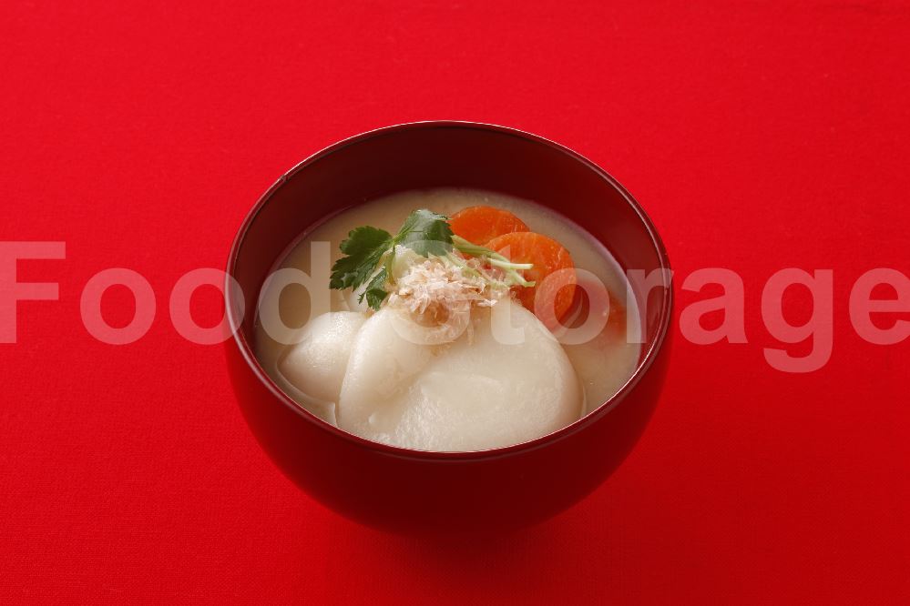 | 丸餅の白みそ関西風雑煮 |