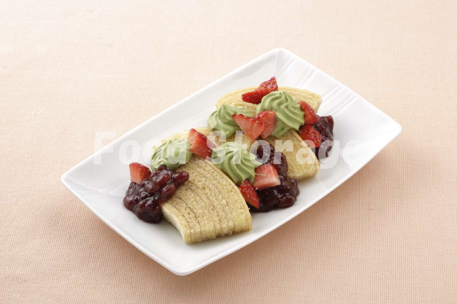 | バームクーヘンのあずきと抹茶クリーム添え |