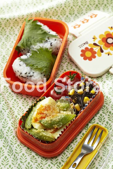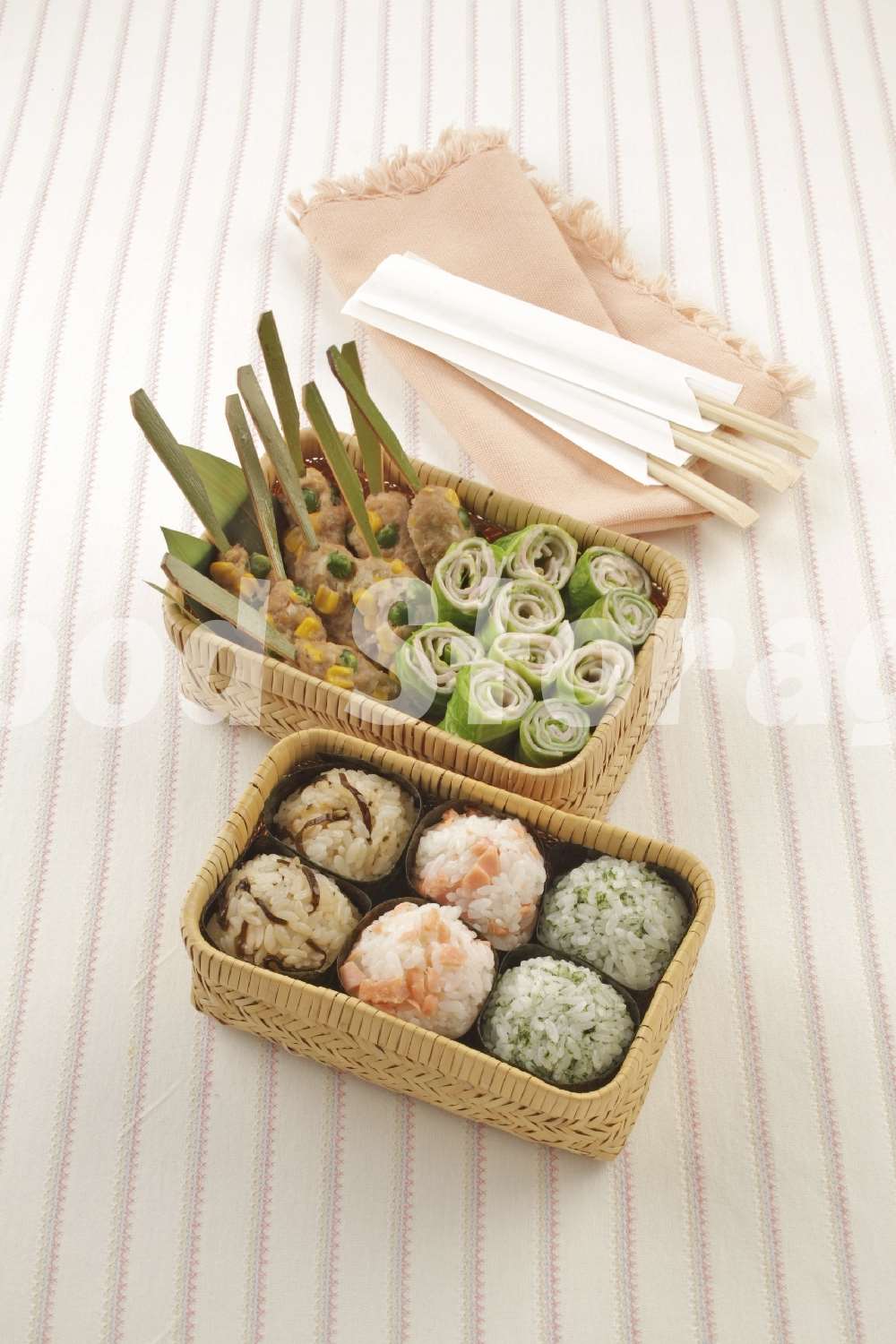 | 【お弁当】3色おにぎり&ポーク棒つくね&ハムのロールキャベツ |
