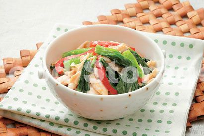 | 小松菜とパプリカのささみそピーあえ |