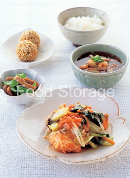 | 鮭の野菜あんかけの献立 |