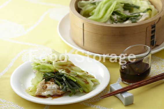 | キャベツとにら、豚肉の重ね蒸し |