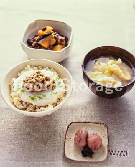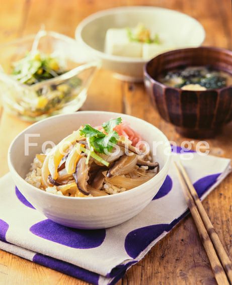 | マクロビ 牛丼風味の玉ねぎ&干ししいたけうま煮のせごはんの献立 |