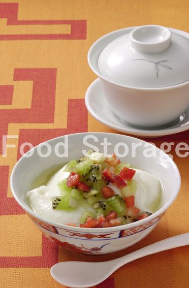 | やわらか杏仁豆腐フルーツシロップかけ |