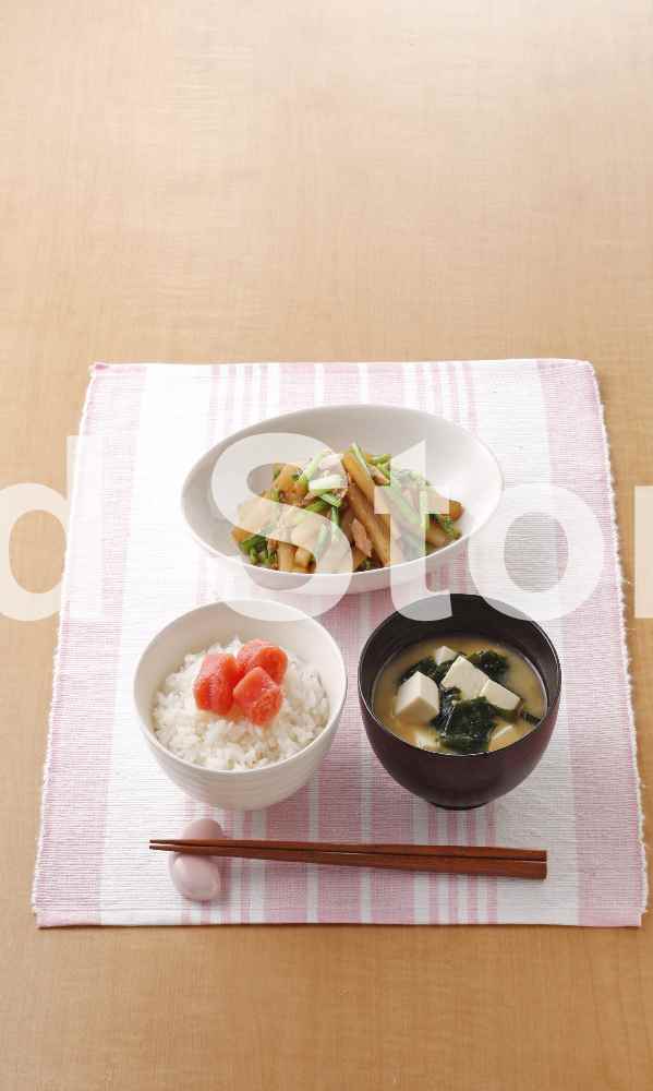 | 【献立】大根とツナのしょうゆ炒め煮(+たらこのせごはん+わかめと豆腐の味噌汁) |
