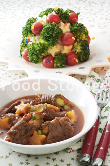 | ロールステーキのトマト煮込みの献立 |