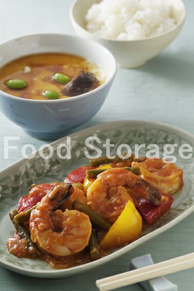 | えびと夏野菜のチリソースの献立 |