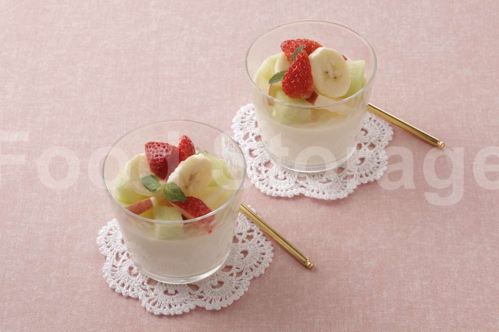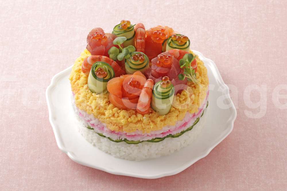 | 【献立】彩り海鮮寿司ケーキ+ミルクプリンのフルーツのせ |