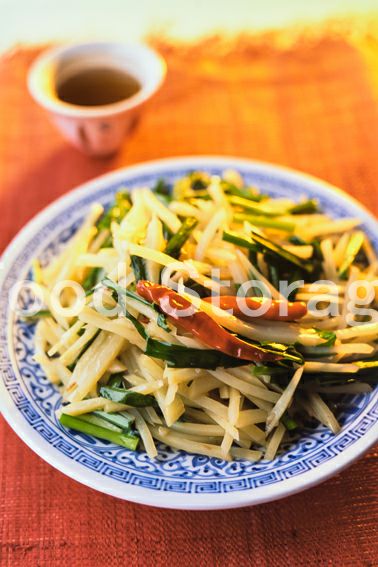 | じゃがいもとにらの甘酢炒め |
