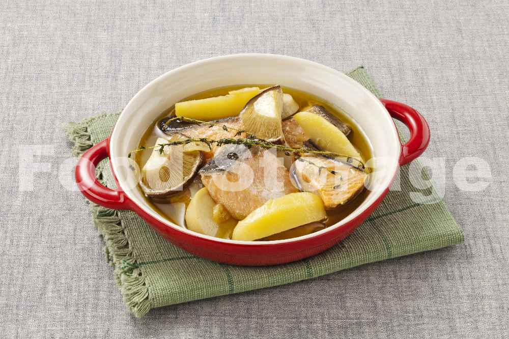 | 【献立】鮭とエリンギとポテトのアヒージョ+しいたけとれんこんのタルタル風ドレッシングがけ |