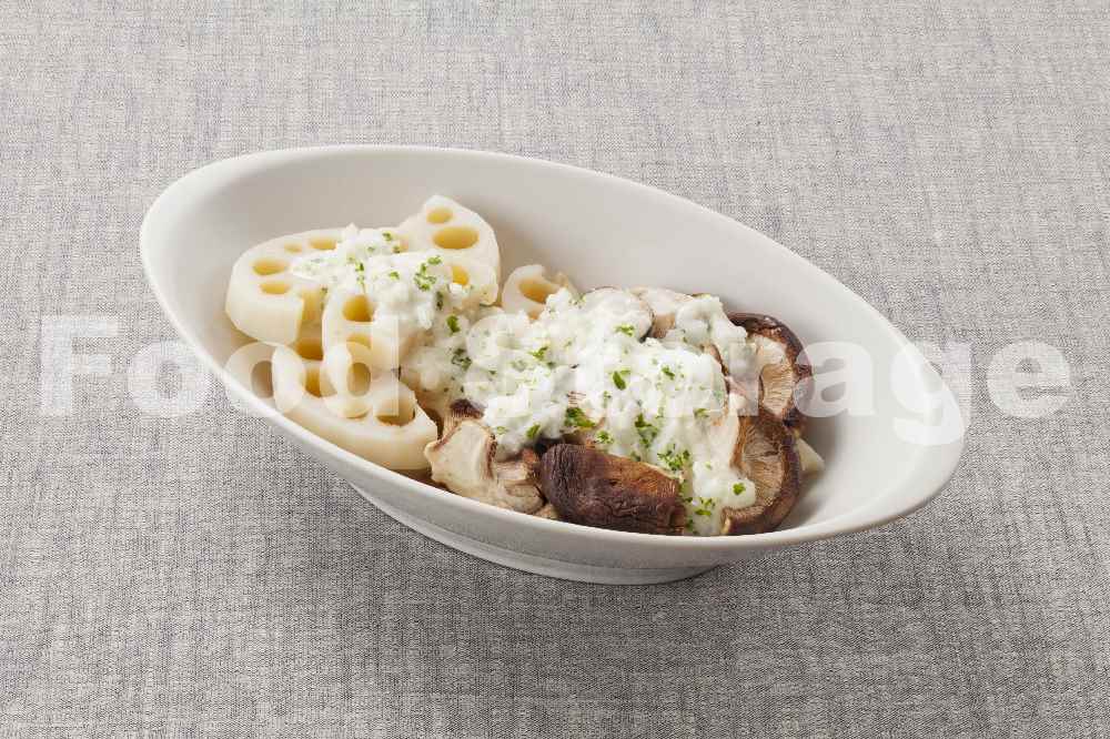 | しいたけとれんこんのタルタル風ドレッシングがけ |