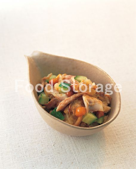 | あじの干物となめこの二杯酢あえ |
