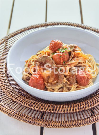 | 牛肉とプチトマトのパスタ |