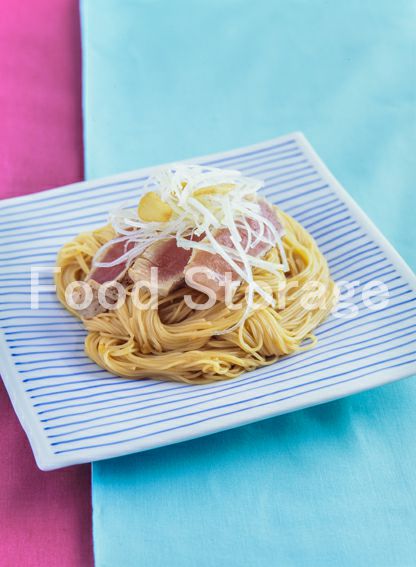 | まぐろのたたきとねぎの冷製パスタ |
