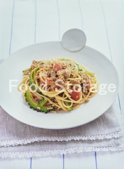 | ゴーヤと豚ひき肉のスパゲッティ |