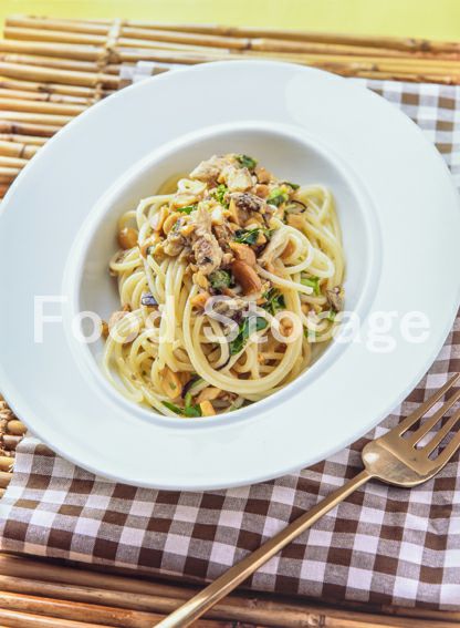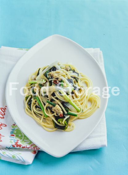 | あさりとわかめ、ねぎのスパゲッティ |