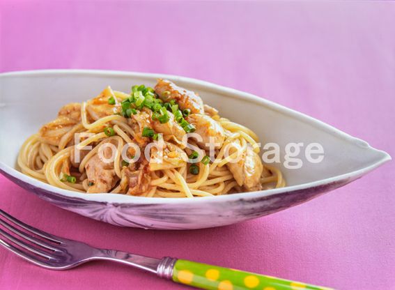 | 豚肉とチンゲン菜のスパゲッティ |