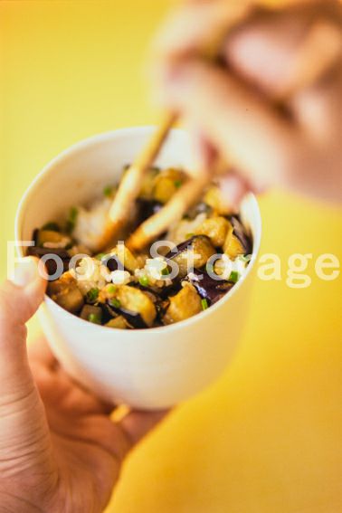 | 揚げなすの香味じょうゆ混ぜごはん |