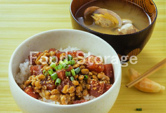 | さいころまぐろの納豆丼とあさりのみそ汁 |