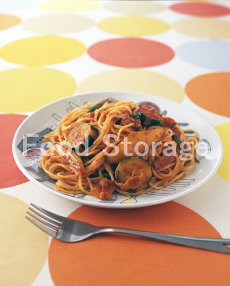 | 夏野菜のカレー風味パスタ |